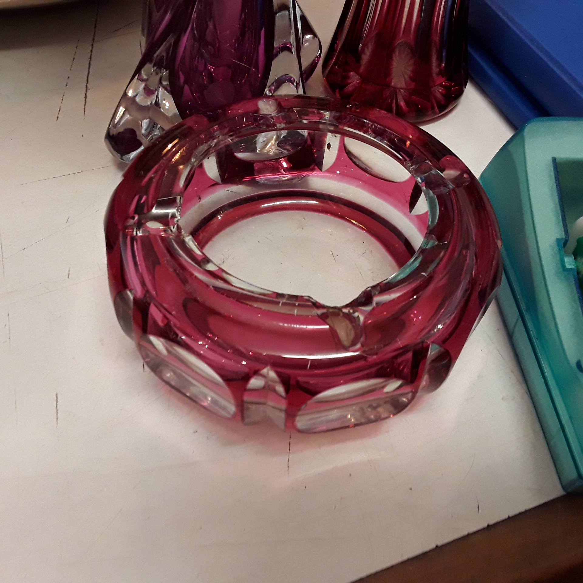 Cendrier Val st Lambert rose
